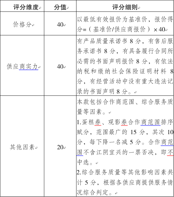 本项目采用综合评分方法,各供应商的最终得分为比选小组成员评定分值的平均值,并按高低顺序排列,确定入围单位。若出现平均值相同的情况,则依据以下规则确定先后顺序:首先比较价格分,若价格分相同,则比其他因素得分,价格得分较高的优先。评分指标及评分标准如下表: